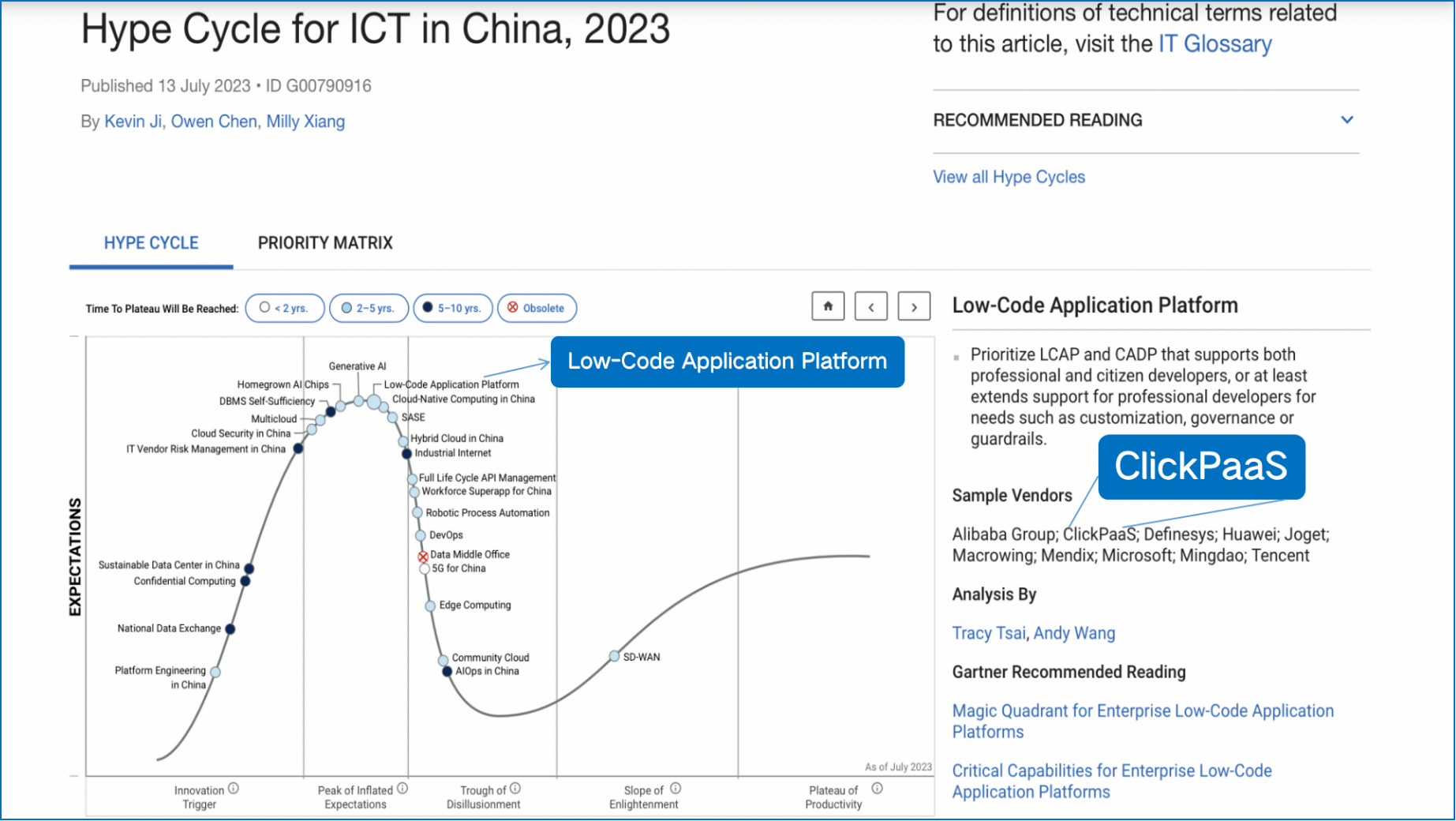 Gartner《2023中国ICT技术成熟度曲线》报告发布,pg试玩在线网站免费入选低代码平台代表厂商